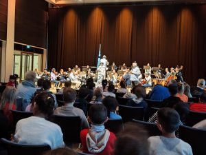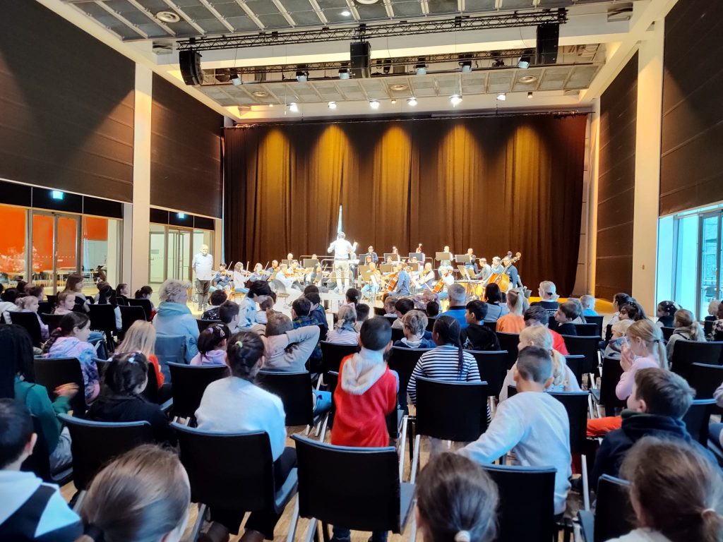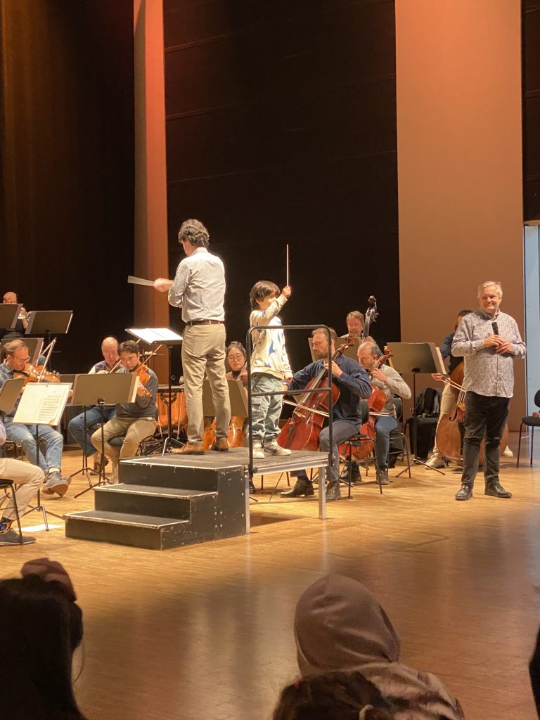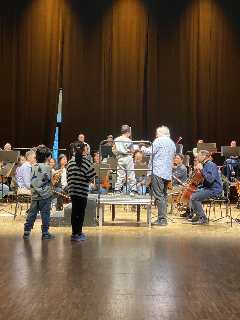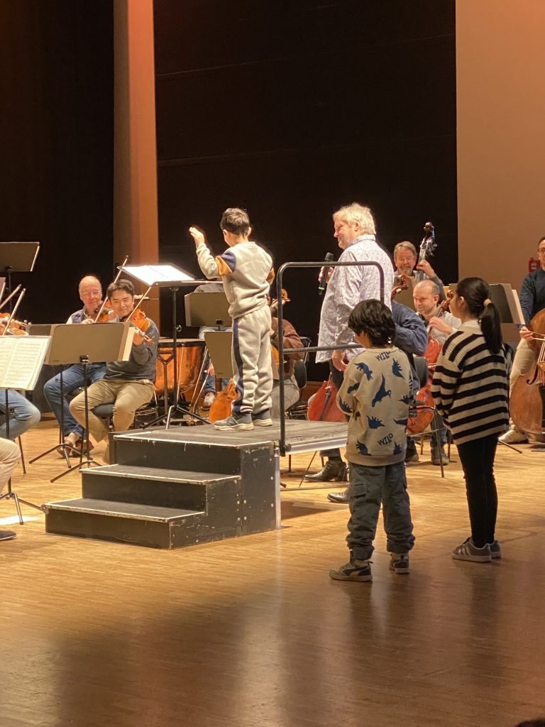 Besonders war, dass einigen Kindern der Schule vorher Dirigierstäbe zugesteckt wurden. Während des Konzertes durften diese Kinder auf das Dirigierpodest steigen und selbst mal ein ganzes Orchester leiten. Das war aufregend!!
